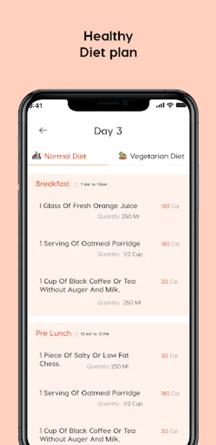 The Diet plan menu starts from day to day 30, follow the food diet and eating time through the Diet plan gym app easily.