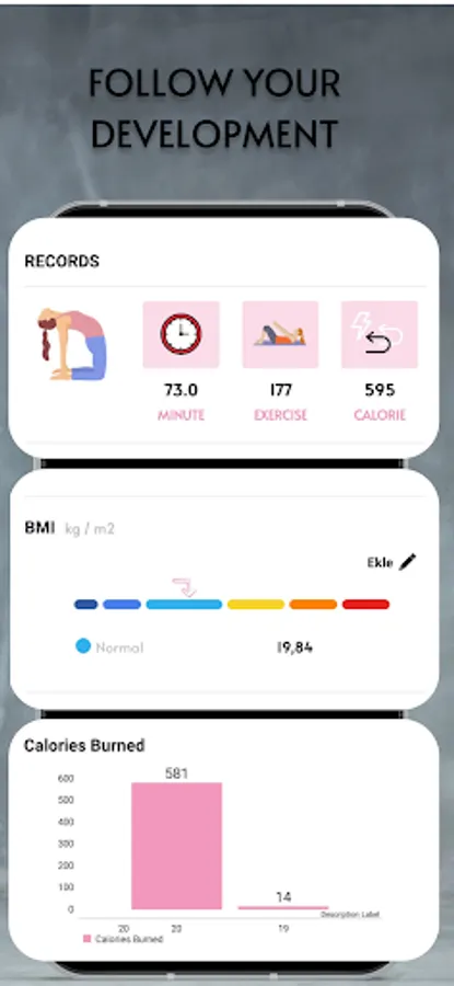 By using the app, you can track your daily fitness goals, monitor the duration and calories of your exercises in graphical form, and examine your progress day by day. Additionally, you can create personalized workout programs with different exercise sets, catering to your own needs and goals.