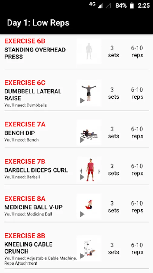 Fatigued? That’s what recovery days are for. On the days between each lifting session, all you have to worry about is one 45-minute session of cardio, staying between 65 and 75 percent of your maximum heart rate. That, and getting ready for the next day’s workout.