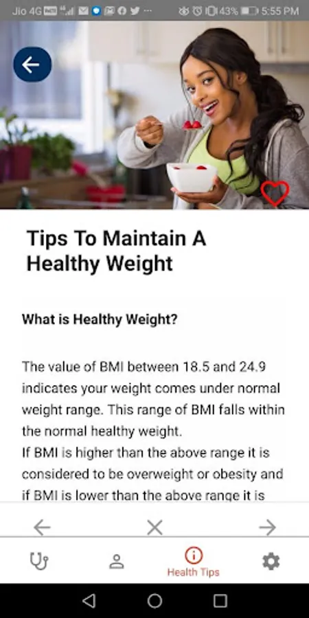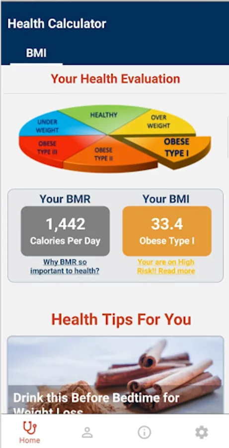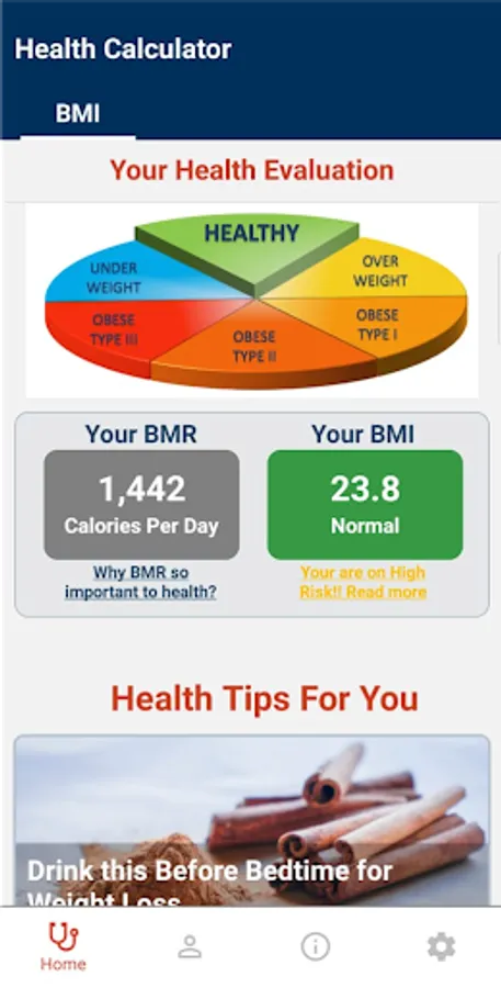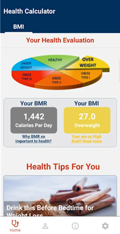 In this app, you can calculate your BMI and BMR which helps you to track how healthy you are. This app is free to use