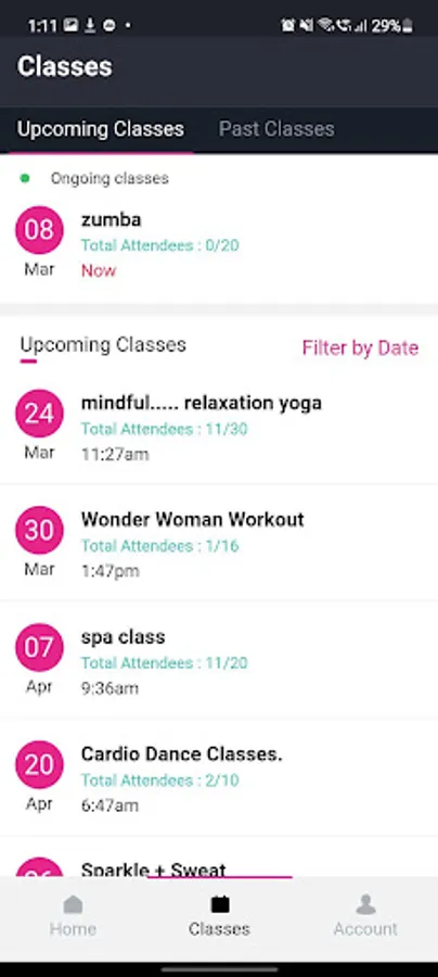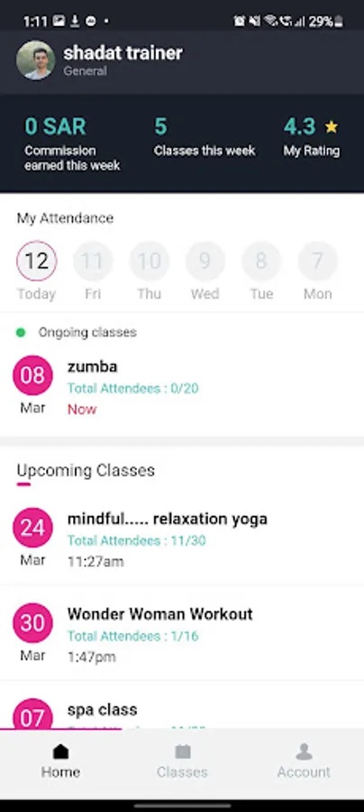 Application is for the trainer to track ongoing classes, past classes, upcoming classes, students and their attendance.