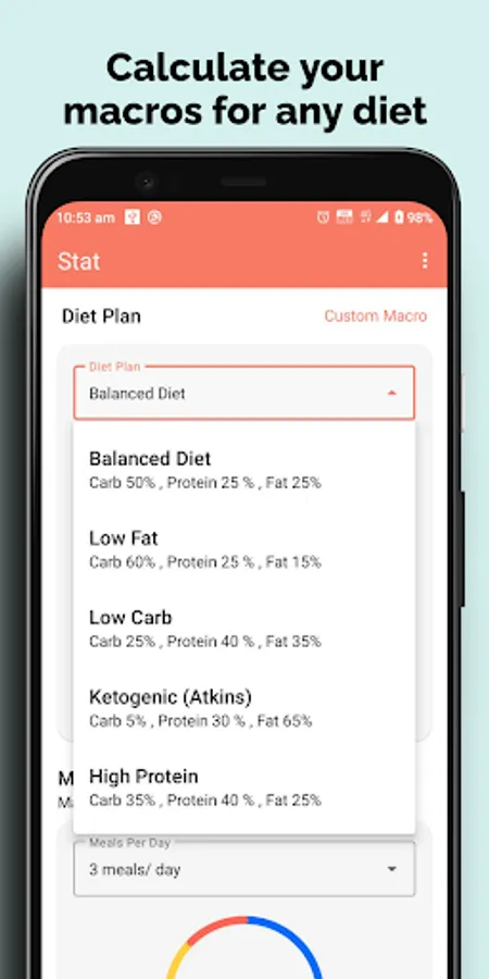 Our app lets you choose from a range of diet / macros plansβweβve got keto (Ketogenic diet) , paleo, the Low Fat, Low Carb, Mediterranean diet, and Hight Protein, Balanced Diet. It automatically calculates your macros.