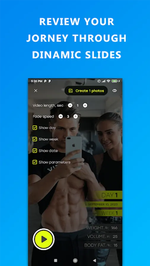 Fitness Photo Tracker is the fitness pal you've been searching for, offering a comprehensive set of tools to help you achieve your fitness and diet goals. Whether you're a beginner or an experienced fitness enthusiast, Fitness Photo Tracker is your ultimate companion on the path to a healthier, fitter you.