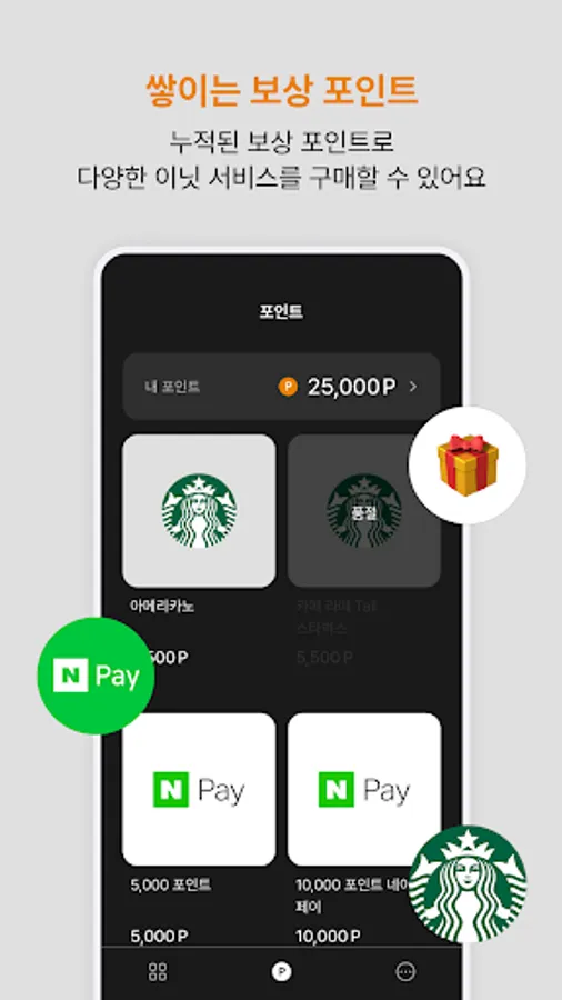 Exchange these accumulated points for Starbucks Gifticons!