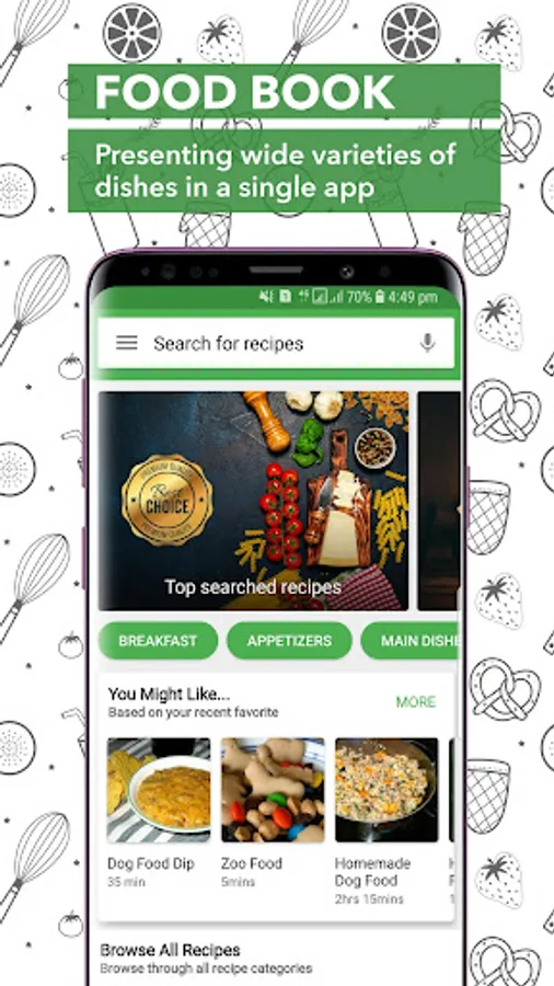 Food book recipes app also supports Android Wear OS. You can search and favorite your recipes in your wear OS device as well.