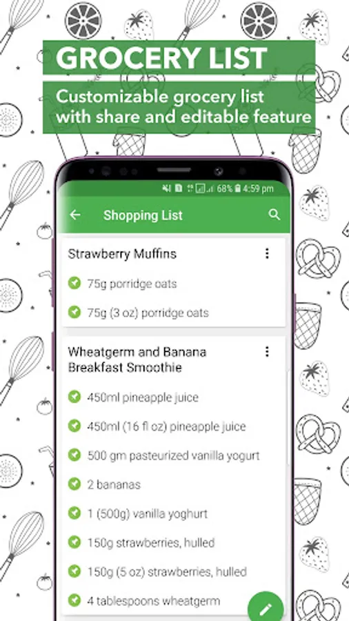 An organized shopping list allows the user to create ingredients list so you won’t miss any for the recipe. Users can also add items directly from recipes.