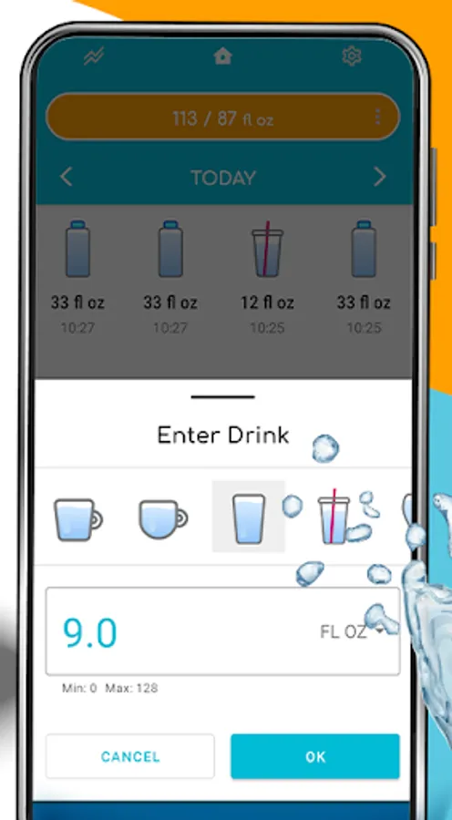 💧 Select from a variety of drink containers and optionally customize the amount when recording your water intake.