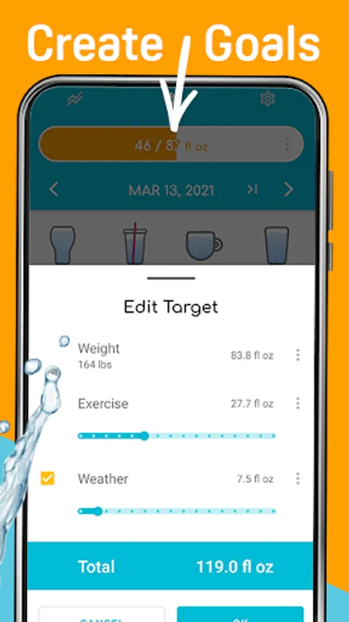 💧 Adjust daily goals based on the days weather and/or exercises you have performed.