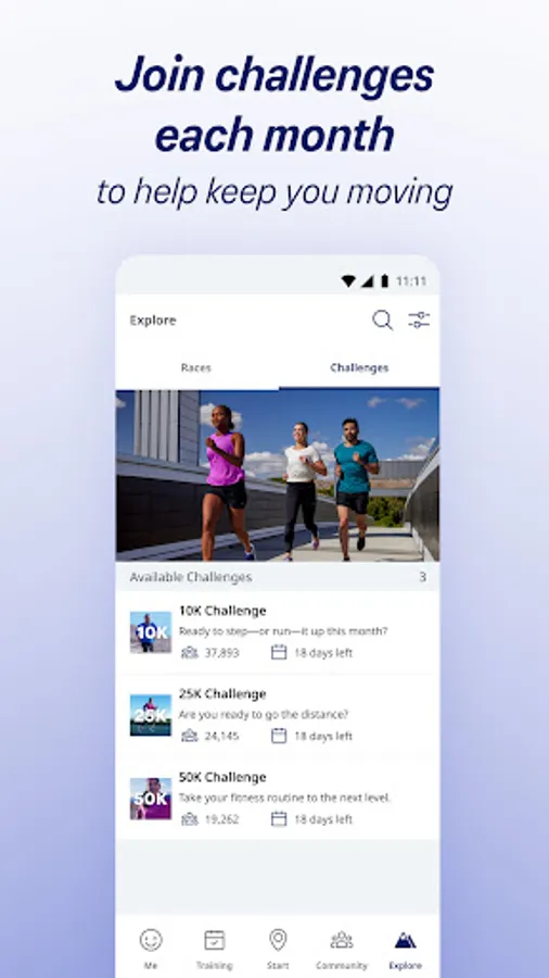 • Running Groups: Create a custom challenge, invite friends, track each other’s progress, and use the chat to cheer each other on.