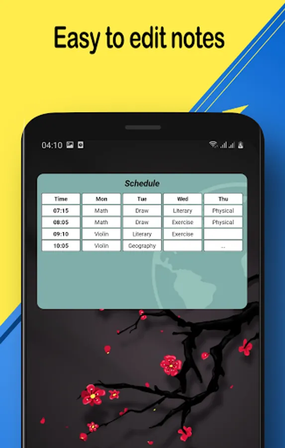 Table note: The application will build a tabular note, with this table you can quickly build timetables and schedules.