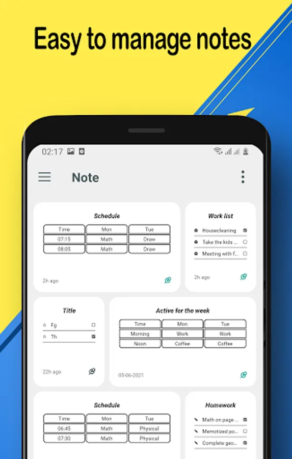 Normal notes: Create a sticky note and you can write anything on it, moreover you can easily customize the text color, the color of the paper and easily bring it to the home screen of your phone.