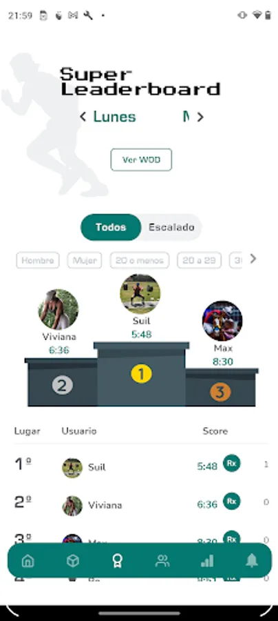 Through our interface you will be able to visualize your daily WOD's, check a leadeboard in real time, run a fitness social network where you can comment on scores, motivate your colleagues as well as receive incentives from our sponsors for your achievements in your training. and more…