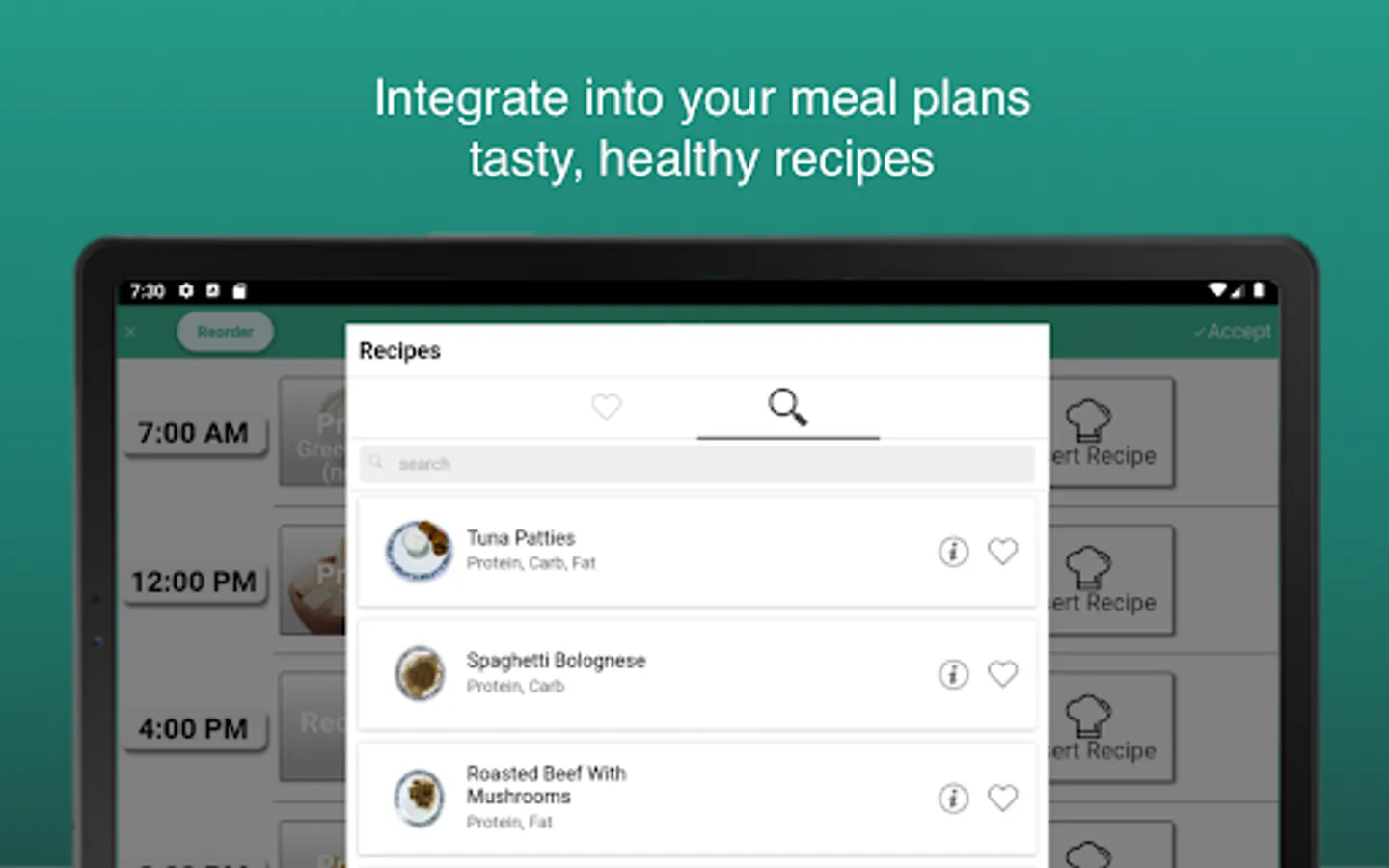 • Tap in to our growing collection of diverse fitness meals and their recipes