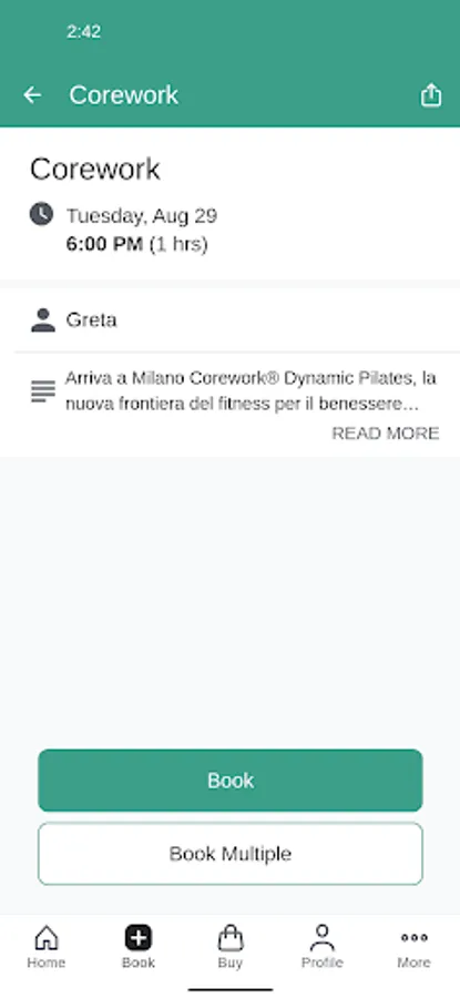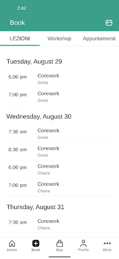 Scarica l'app di COREWORK per pianificare e prenotare le tue lezioni! Con questa app potrai prenotare le classi nell'orario migliore per te e visualizzarle in ogni momento, insieme alle promozioni e alle informazioni più importanti della palestra.