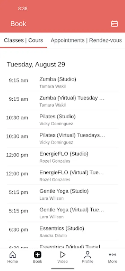 • Sign up for classes like yoga, zumba, pilates, barre and more