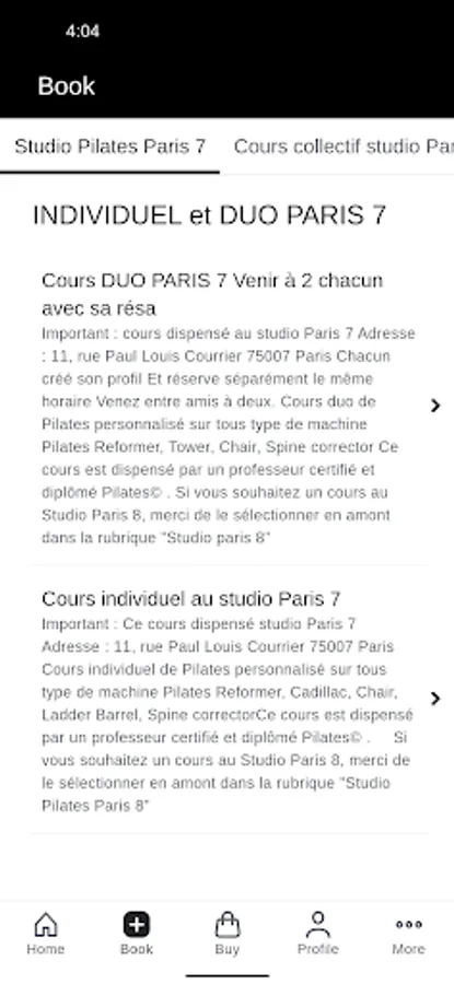Une interface claire et complète pour découvrir, organiser et réserver vos cours de Pilates en Studio à Paris mais aussi en ligne.