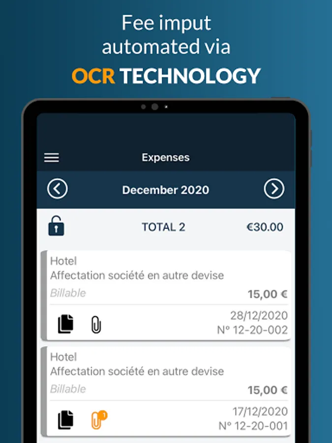- > Expense inputting is automated using photo-based OCR technology for character recognition.