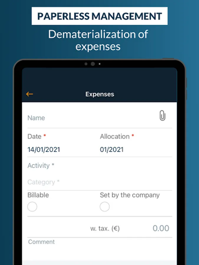 -> All activity functions are included: time management, training follow-up, leave/absence management and expense report management.