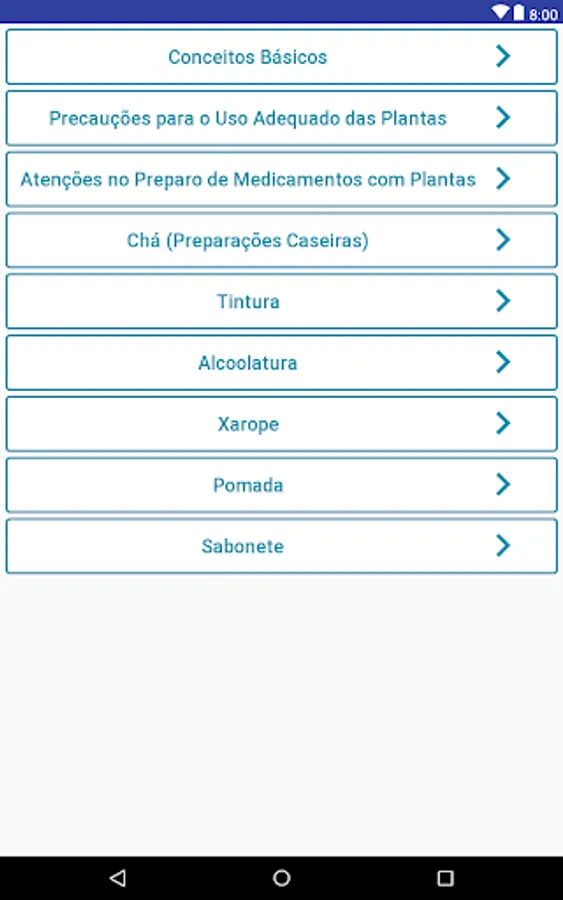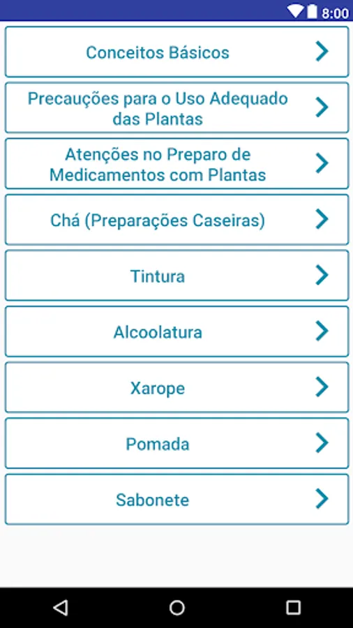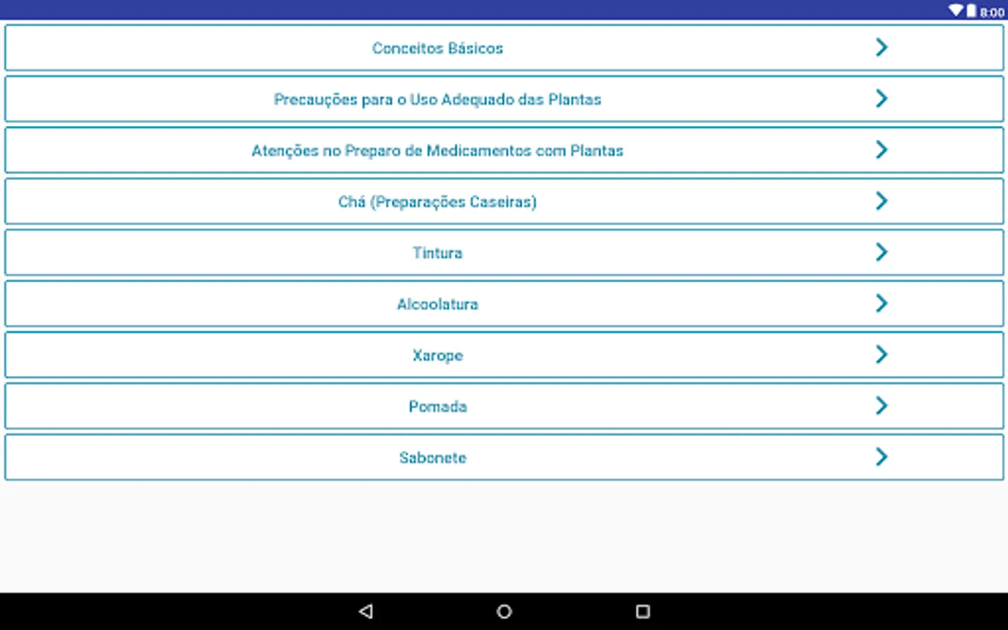 The application contains the function list of plants that can be accessed through groups ordered by clinical indications or through the complete list of plants. The Fitodonto also has a section responsible for gathering the basics of herbal medicine for any users to deepen their knowledge on the subject. In addition, the application has a section of questions for users remedy doubts. Finally, it presents the project creators.