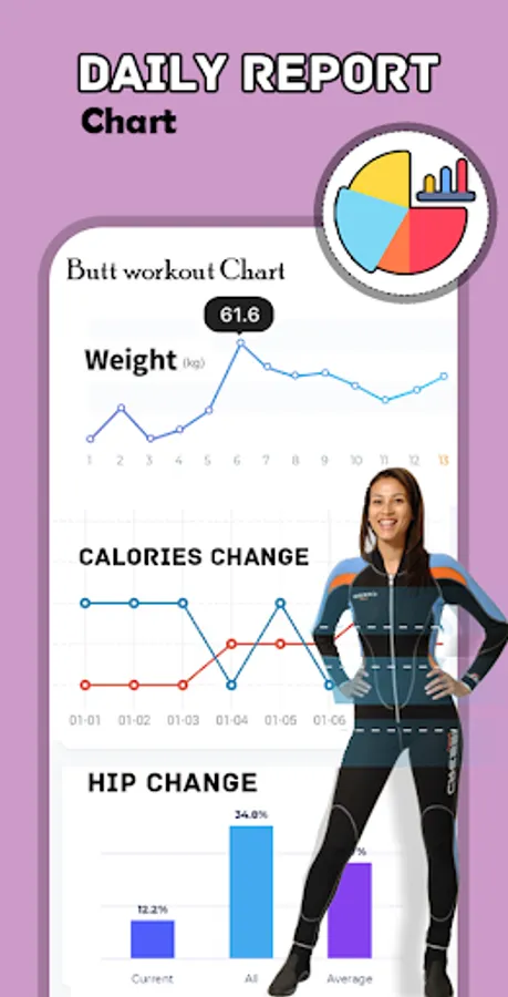 + Very often in sports, especially when it is connected with the problem of support and getting a good shape, and especially in buttocks workout, there exists laziness, there are a lot of "important" tasks to do, which is why it is important to structure your bigger hips workout, and each time entering into the app, you can see at what level in the way of getting beautiful butt and Brazilian hips you are. Tracking and recording of training performance, weight, hips and thighs measurements will serve as a great motivator, and also allow to insert booty exercises into your life and make it a habit.