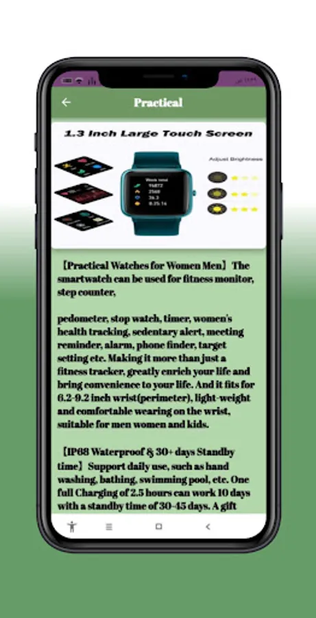 - A description of the design and screen of the Fitpolo Fitness Tracker