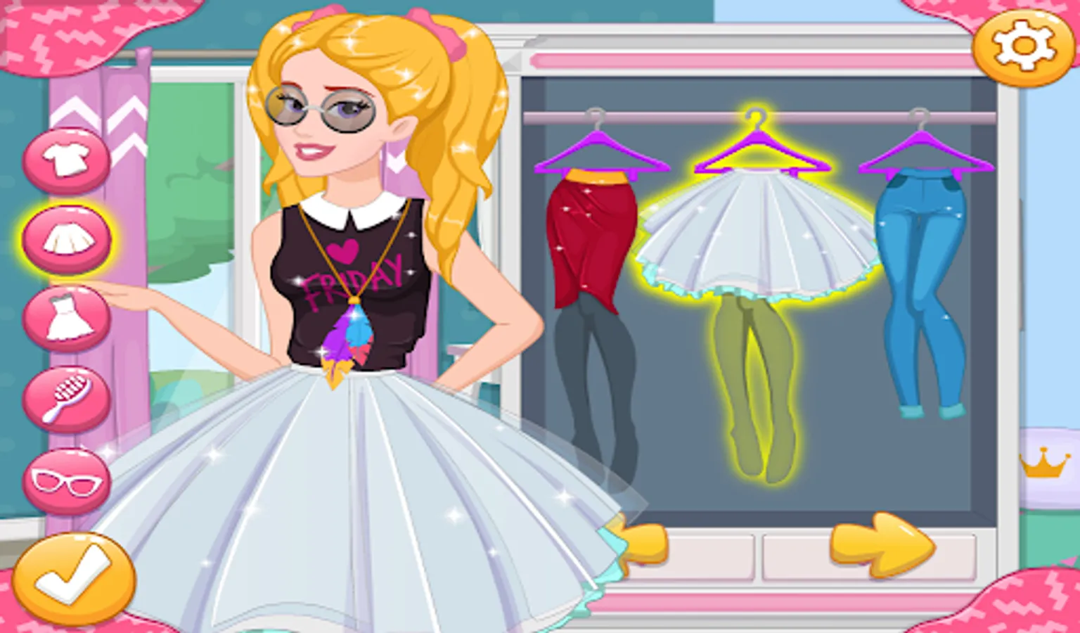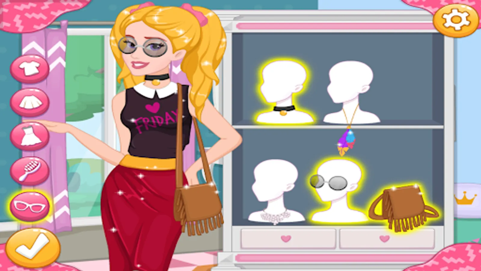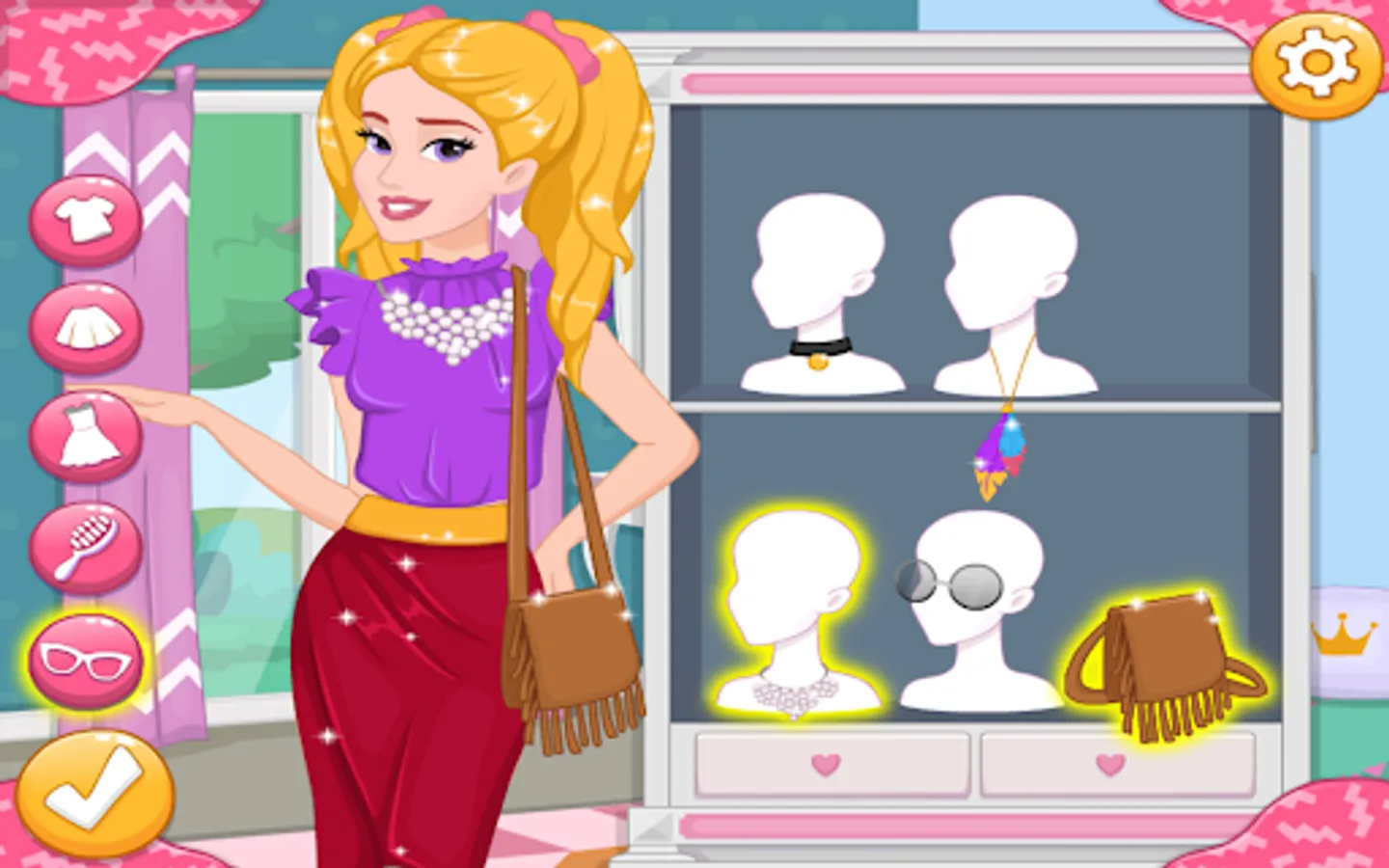 Fabulous! As you can see, there are also a lot of stylish accessories: a noble tiara, a diamond necklace, a magic wand... With this amazing variety you can create hundreds of fashion outfits! Dress up your princess as you want! Try and enjoy
