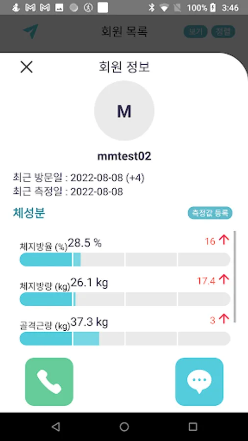 Fitrus T - Managers chat with real-time members and check the latest trends in member body fat percentage.