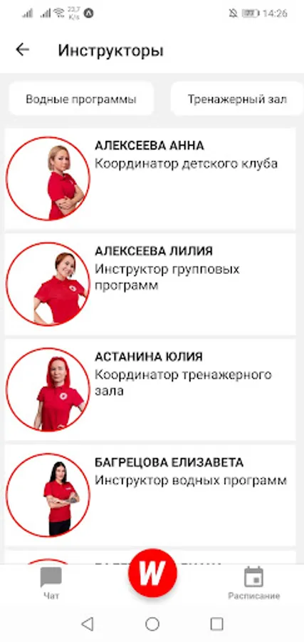 In the World Class app, you can view the schedule of group programs, sign up for workouts, view contract information, earn bonuses, share workouts with friends, chat with coaches and more.