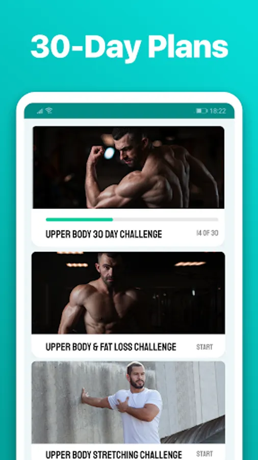 Muscular and Strong Upperbody Workout by Fitness Coach provides daily workout routines for all experience levels from beginners to advanced. Workouts are just a few minutes a day. No equipment, coach, or previous workout experience needed.