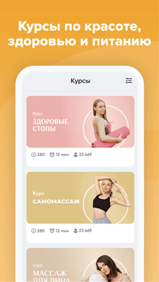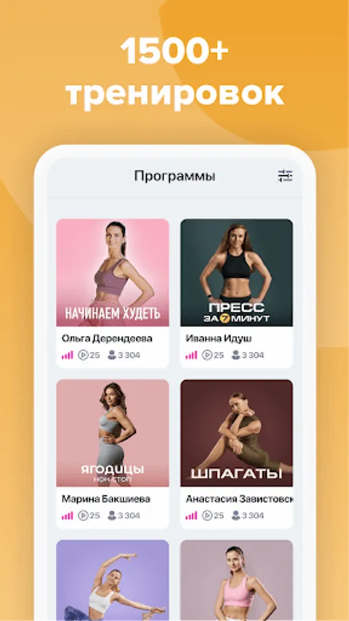 ● Over 1400 online fitness workouts for home use. A rich selection of home workouts is divided into areas: weight loss for free, stretching, yoga and meditation, flat stomach, buttocks, abs, weight loss for women and others. No special training or equipment is required to workout at home. All you need is to choose an online fitness training program at home, watch and repeat.