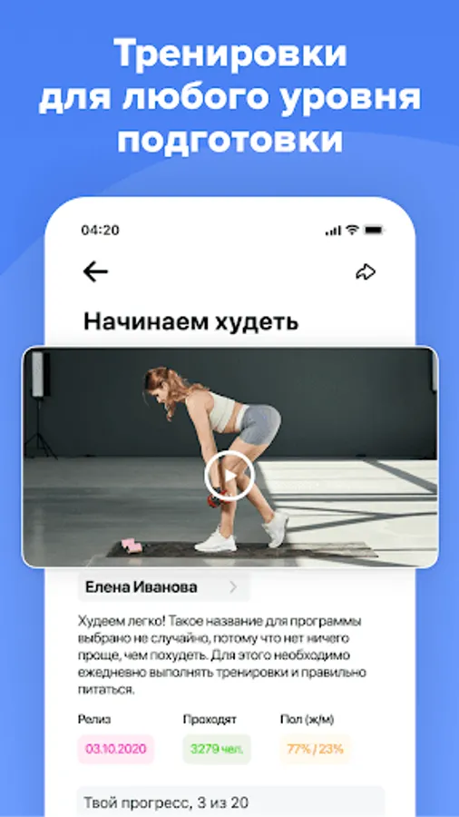 Fitness app weight loss app has wide functionality and is easy to use. In the workout app you will find: