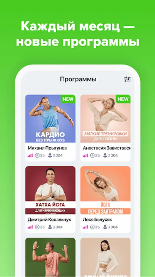 For the convenience of choice, we have created a separate tab with all the programs for weight loss in areas, with an additional filter. The filter will help you choose a program by level of training, a specific direction or a fitness trainer.