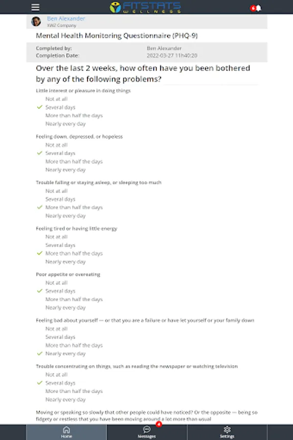 The FITSTATS App allows student and employees to easily record and visualize wellness, well-being, physical activity, and questionnaire data and report physical or mental health problems from anywhere. It also allows wellness specialists, medical providers, and leaders to collect and access key data instantly and receive instant alerts and notifications wherever they are.