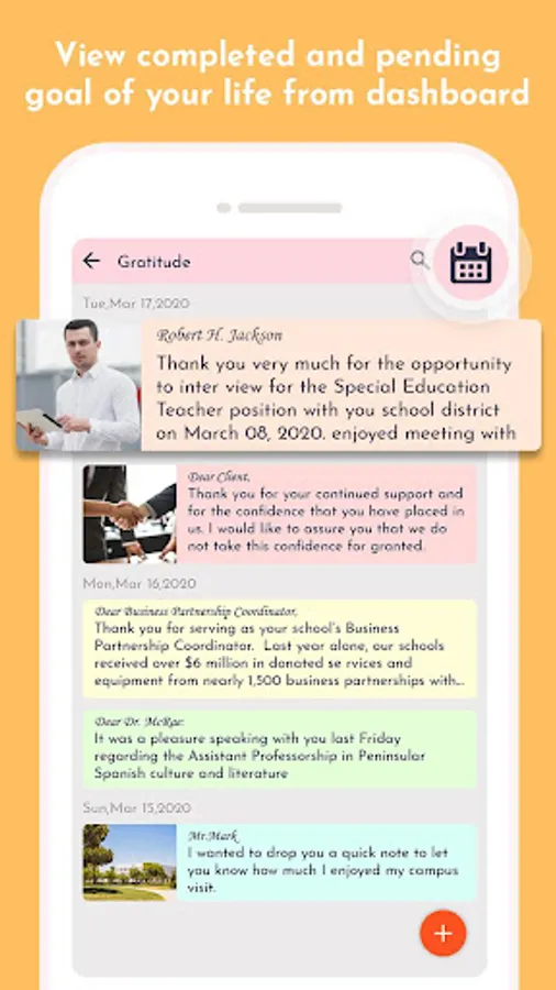 Gratitude Journal allows you to record ideas, thoughts and meditation on the previous day. Each journal entry helps you increase prosperity, mindfulness, clear vision and build self-confidence.