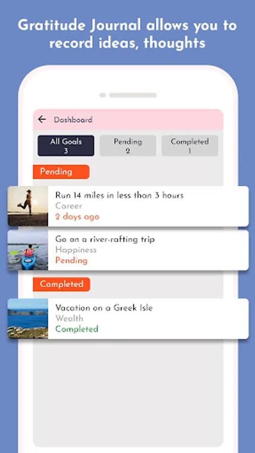 With the MyGoals: Set Vision Board, Gratitude Journal, you can be grateful everyday by recording ideas and things that make you more happy every day.