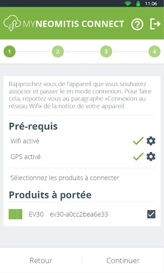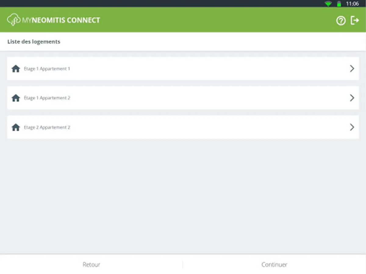 - To ensure automatic association with dwellings and accounts created in other Neomitis applications by transferring products from the Myneomitis Connect application to the user’s Myneomitis account. For example, products will be transferred directly from the Myneomitis Connect application to the Myneomitis application once the products have been installed and paired.