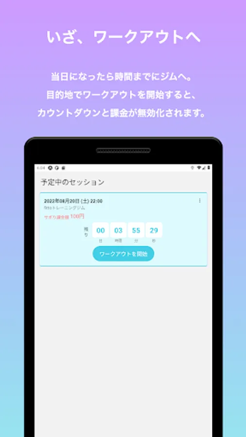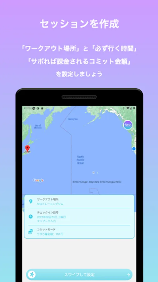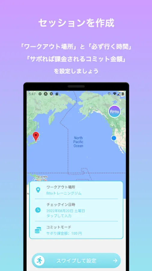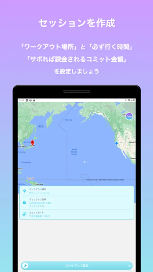 1. Create a workout session from the home screen. Let's set the "place", "must visit date and time", and "commit amount charged if you skip".