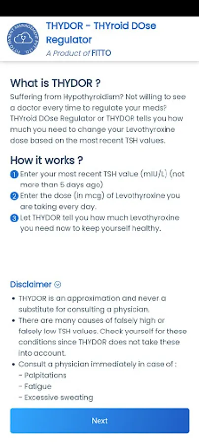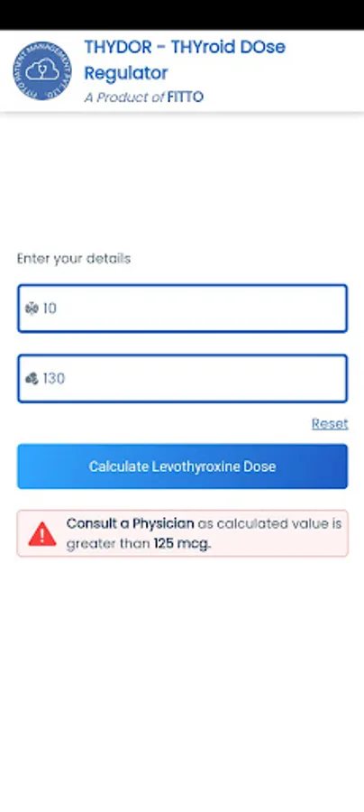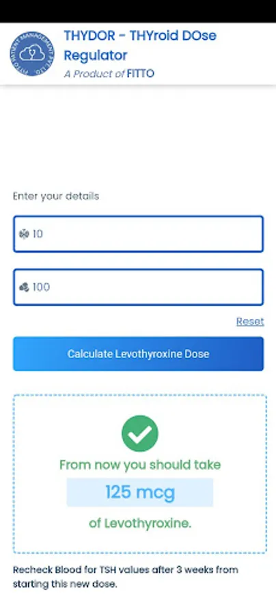 Suffering from Hypothyroidism? Not willing to see a doctor every time to regulate your meds? THYroid DOse Regulator or THYDOR tells you how much you need to change your Levothyroxine dose based on the most recent TSH values.