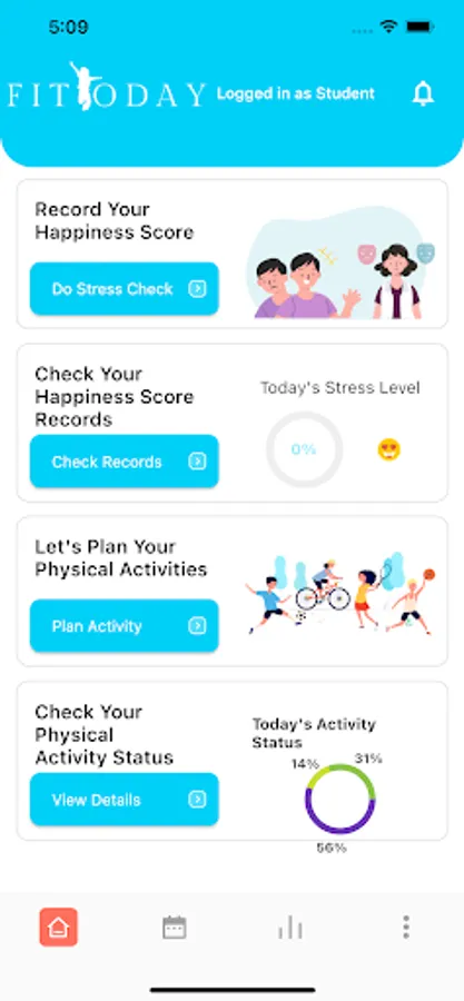 At FitToday look at fitness on two major factors your happiness and physical health. A huge aspect of our life includes our happiness and how we take care of our stress. Our stress is based on many things, like our sleep, social pressure, study pressure, our playtime, and what we eat. If we don't stay happy we will not be able to enjoy many aspects of life. A physical aspect of our life includes our health and how we take care of our bodies. Our body's health is based on many things, some being how often we exercise, our cleanliness, and what we eat. If we don't stay healthy we will not be able to enjoy many aspects of life.
