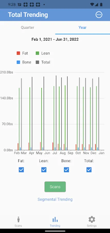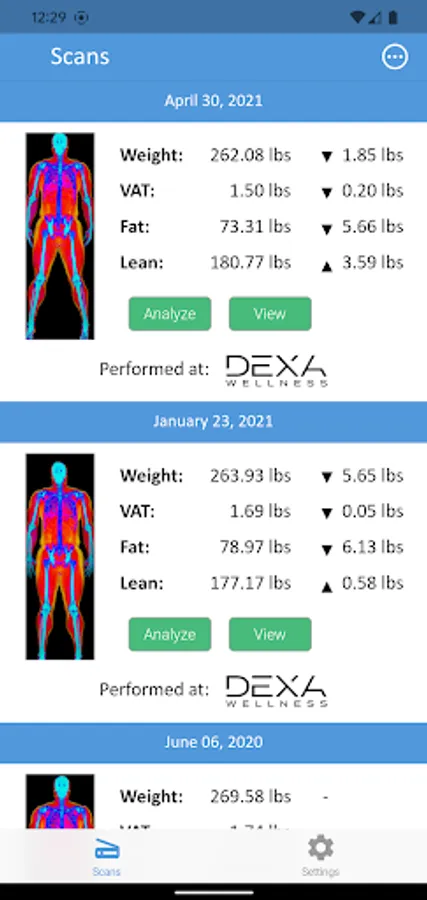 Note that FitTrace DXA partners (see https://www.fittrace.com/partners/) electronically make your scans available to you. Otherwise you may manually enter your DXA data, as an in-app purchase, if you were not scanned at one of these facilities.