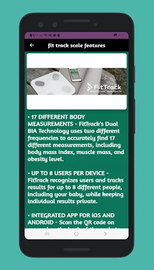 In our app, you will find everything you want and need to know about your fit track scale guide and to know the details, and how to connect the fit track scale guide to your phone,