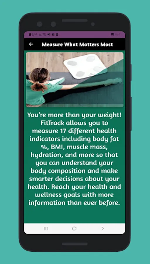 In fit track scale guide app we supported many sections of content that will let you now more information about fit track scale guide