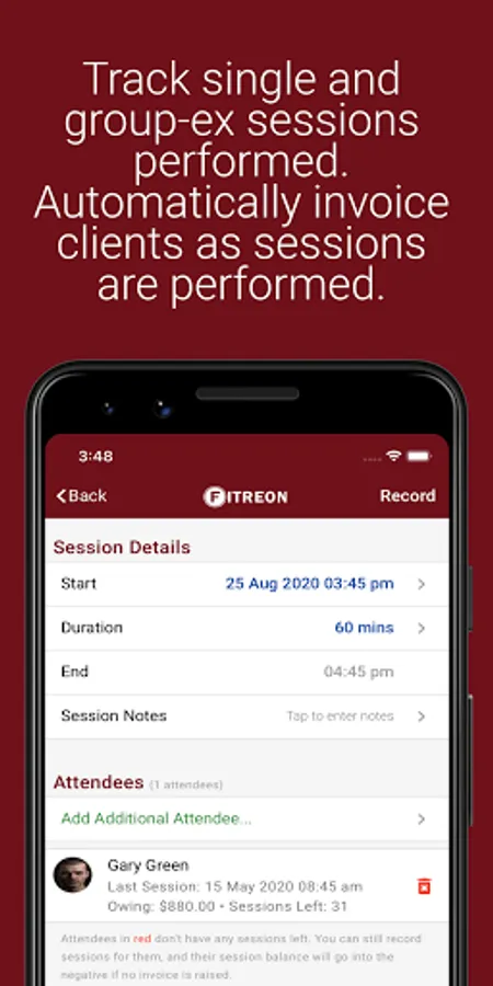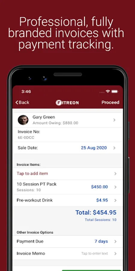 Personal trainers- impress your clients with professional-looking invoices and a quick, efficient sales process. Sell sessions and issue receipts and invoices with your mobile device, right on the gym floor or outdoor training area. No more hand-written receipts, and no more lost revenue because you forgot to record a session that was performed.