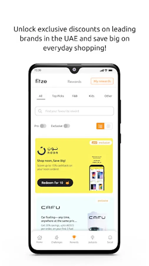 Transform your daily steps into coins and unlock a world of exciting rewards with Fitze! Earn Fitze coins for your steps and explore an array of exclusive rewards from leading UAE brands listed in the app's marketplace.