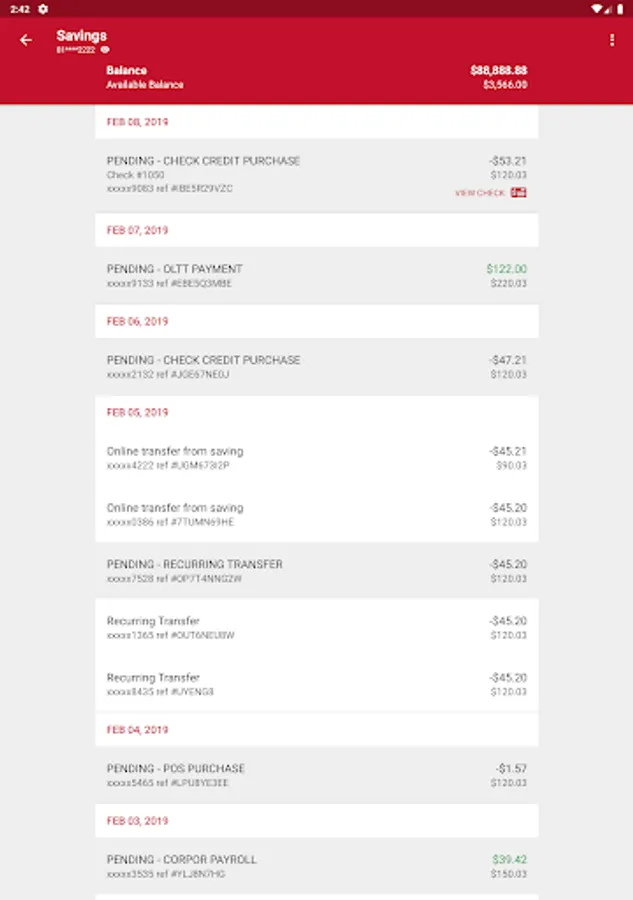 Our Android web‐app gives users the ability to: Check Balances, View Recent Transactions, Transfer Funds, Pay Bills to Existing Payees, and more!