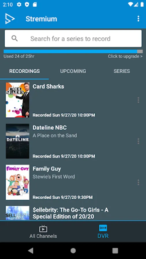 Watch & DVR all your favorite live sports, news, entertainment, and more! Have other channel providers? Connect them to your Stremium account & access all your channels in one place, from multiple devices. No more switching between apps.