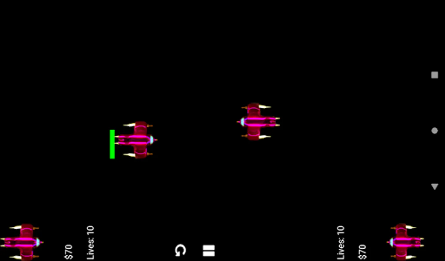 You can send different types of spaceship to the other player. You are allowed to use just a single finger. From time to time you get monye or when you destroy the other player spaceship or if you manage to destroy a spaceship