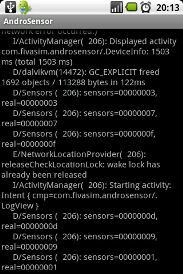 This patch contains the required permission and the code to show the log file in AndroSensor. It doesn't do anything if you don't have AndroSensor installed.