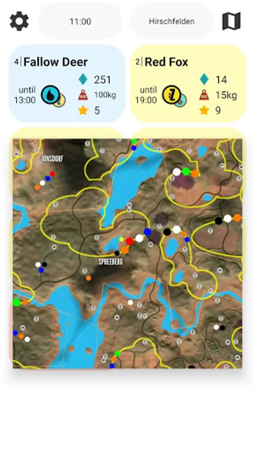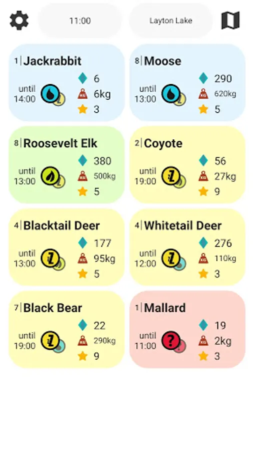 time, and the map you're playing, and a list of all the animal need zones as well as diamond rating, class max level, weight and callers will pop up, all in one place!