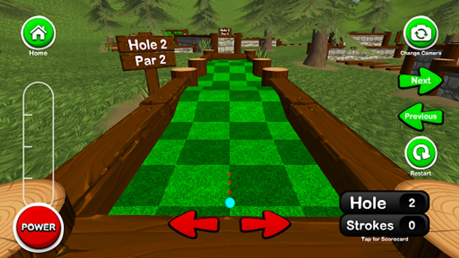 Mini Golf 3D 3 is a free mini golf game that currently includes three 18 hole courses, with many more to come, with a simple to use interface and appealing hand-painted custom modeled holes. Mini Golf 3D now features two player mode (same device) so you can pass and play with a friend. Mini Golf 3D 3 brings back the classic geometric style holes and features normal mode, where you can compare your high scores with people around the world and unlock achievements, and a practice mode where you can skip around the course and play any hole you like. There are also 3 different camera modes to cycle through including a behind-the-ball view, aerial view, and another view that gives you a preview of the hole. You can sign in to the Google Play Games Service to compete against friends on the global leader boards and earn achievements as well. The leader boards rank the best scores for the current day, week, and all time, as well as the total number of holes-in-one and rounds completed. If you enjoy mini golf, you'll love this relaxing, yet challenging mini golf game. See if you can set the high score and become the mini golf champion!